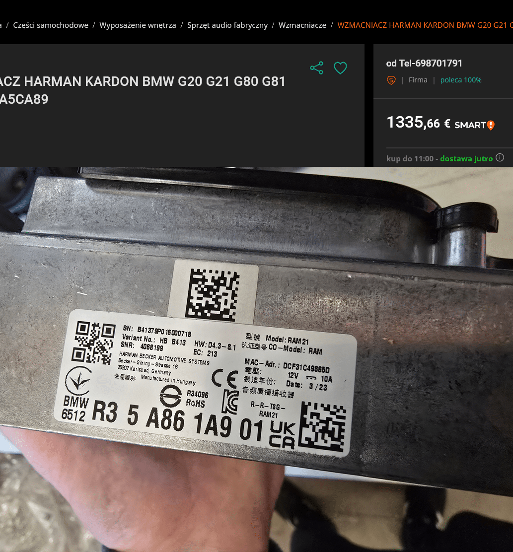 • impianto HARMAN KARDON BMW G20 G21 G80 G81 5A861A9 5A5CA89