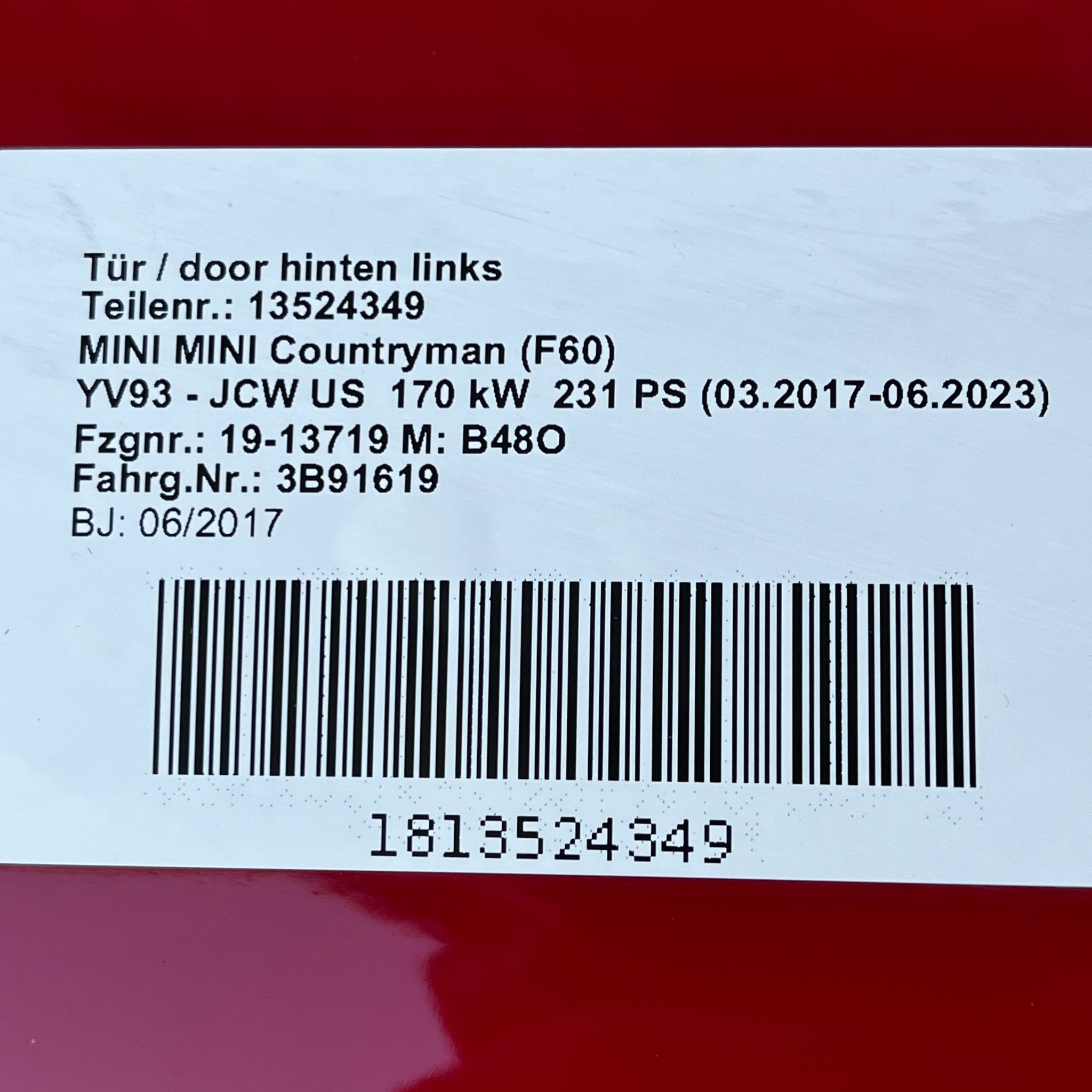 - PORTIERA POSTERIORE SINISTRA MINI F60 COUNTRYMAN ROSSA